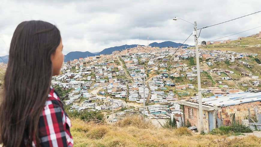 Portrait of beautiful girl in shanty town.