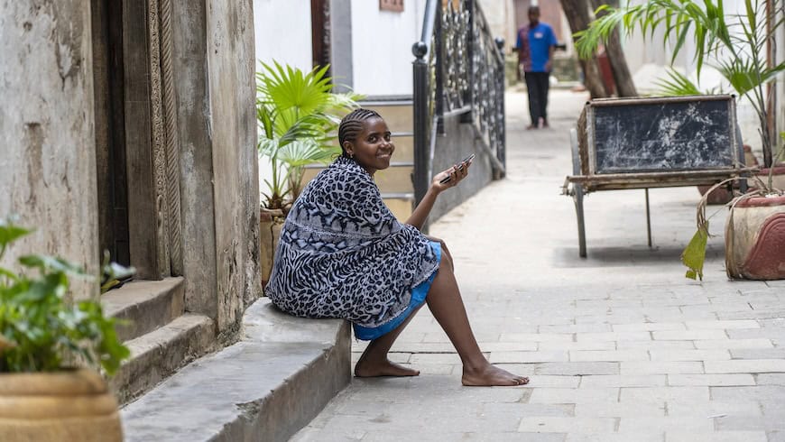 African girl rest on the street in Stone Town on the island of Zanzibar, Tanzania, East Africa